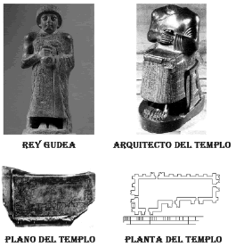 Figura 1. Estatua del rey caldeo Gudea y representación en planta del Templo.